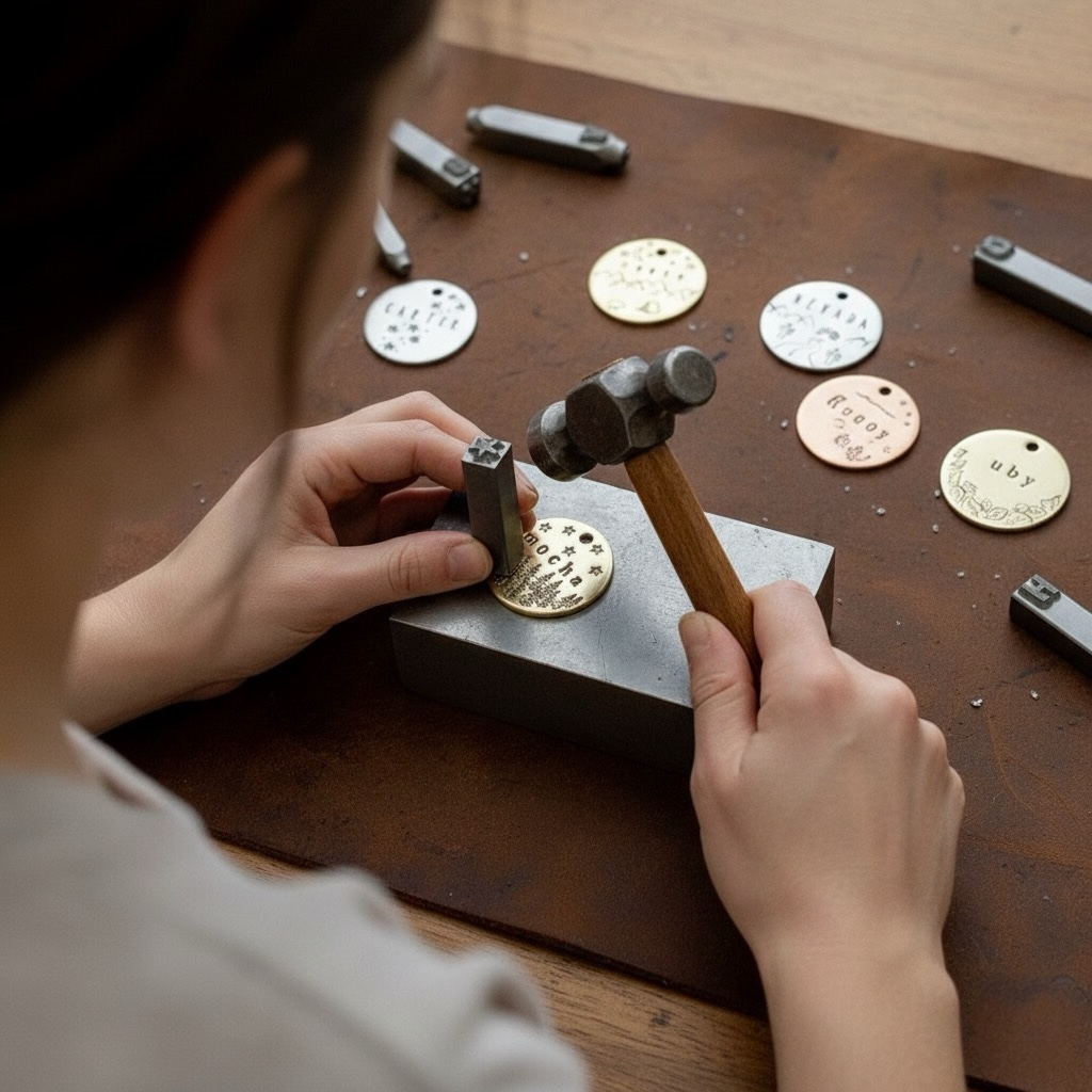 Wähle aus drei edlen Farben – Silber, Roségold oder Gold – und verleihe der Marke mit sorgfältig ausgewählten Symbolen deine eigene Geschichte. Jede Marke ist ein Unikat!
